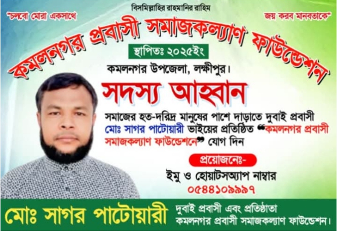 দুবাই প্রবাসী সাগর পাটোয়ারীর উদ্বেগে কমলনগর প্রবাসী সমাজকল্যাণ ফাউন্ডেশনের পথ চলা শুরু!