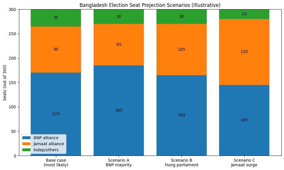 বর্তমান প্রবণতা অপরিবর্তিত থাকলে বিএনপি জোট প্রায় ১৭০-১৮০টি আসন পেতে পারে। অন্যদিকে জামায়াত সংশ্লিষ্ট জোট প্রায় ৮০-১০০টি আসনের মধ্যে অবস্থান করতে পারে। এছাড়া স্বতন্ত্র প্রার্থী, ছোট রাজনৈতিক দল মিলিয়ে প্রায় ২৫-৩০ টি আসন পেতে পারে। যদিও এমন ফল হলেও সেটা বিনপি জোটের জন্য হতাশার বৌকি?