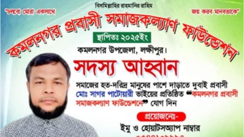 দুবাই প্রবাসী সাগর পাটোয়ারীর উদ্বেগে কমলনগর প্রবাসী সমাজকল্যাণ ফাউন্ডেশনের পথ চলা শুরু! হাবিবুর রহমানঃ লক্ষীপুরের কমলনগর উপজেলার হাজির হাট বাজারের সবার পরিচিত মুখ,দীর্ঘদিনের দুবাই প্রবাসী সাগর পাটোয়ারীর উদ্বেগে,সবার সুখে হাসবো…
