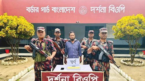 চুয়াডাঙ্গা বিশেষ প্রতিনিধিঃ---------চুয়াডাঙ্গার দর্শনা সীমান্ত এলাকায় বর্ডার গার্ড বাংলাদেশ (বিজিবি) এক সফল অভিযান পরিচালনা করে বিপুল পরিমাণ স্বর্ণসহ এক চোরাকারবারিকে আটক করেছে। উদ্ধারকৃত স্বর্ণের বাজারমূল্য প্রায় আড়াই কোটি টাকা…